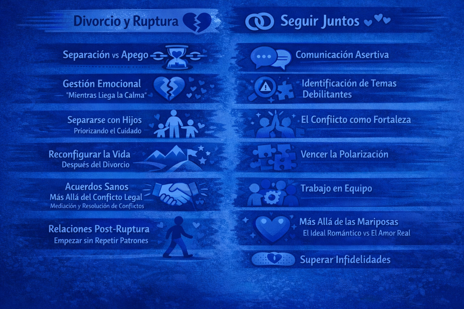 Es por esta razón que La pareja es comprendida dentro de una interacción permanente, compleja y sobre todo confusa cuando aparece el conflicto. Es de vital importancia encontrar las dinámicas que son pilares y que son transversalizadas por la comunicación, la confianza y el amor. Estoy en capacidad de subrayar lo esencial, entregar herramientas para la identificación de situaciones problemáticas y sobre todo aprender a resolver situaciones con asertividad.